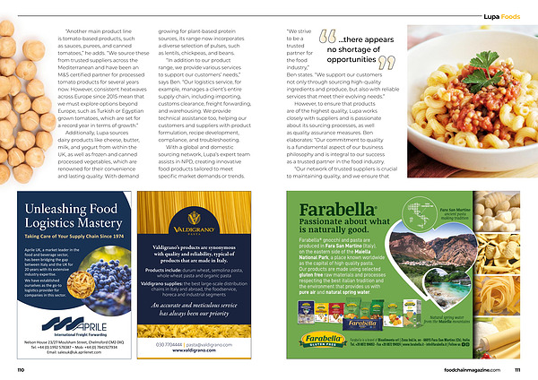 growing for plant-based protein sources , its range now incorporates a diverse selection of pulses , such as lentils , chickpeas , and beans . “ In addition to our product range , we provide various services to support our customers ’ needs ,” says Ben . “ Our logistics service , for example , manages a client ’ s entire supply chain , including importing , customs clearance , freight forwarding , and warehousing . We provide technical assistance too , helping our customers and suppliers with product formulation , recipe development , compliance , and troubleshooting .