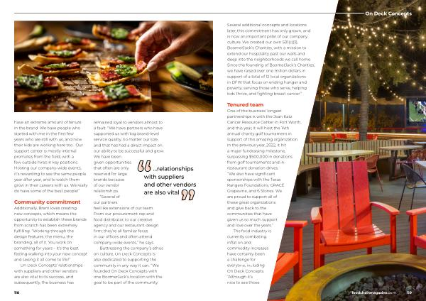 Buttressing the company ’ s ethos on culture , On Deck Concepts is also dedicated to supporting the community in any way it can . “ We founded On Deck Concepts with one BoomerJack ’ s location with the goal to be part of the community .