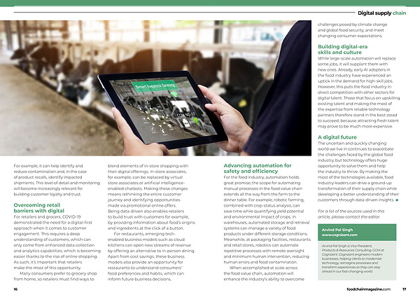 The uncertain and quickly changing world we live in continues to exacerbate the challenges faced by the global food industry , but technology offers huge opportunity to solve them and help the industry to thrive . By making the most of the technologies available , food industry leaders can drive a ground-up transformation of their supply chain while developing a better understanding of their customers through data-driven insights . ■