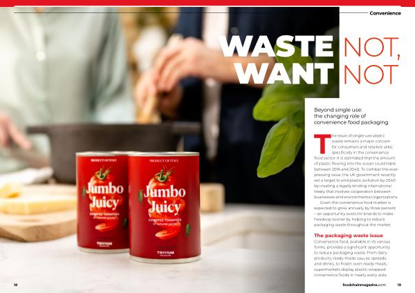 The issue of single-use plastic waste remains a major concern for consumers and retailers alike , specifically in the convenience food sector . It is estimated that the amount of plastic flowing into the ocean could triple between 2016 and 2040 . To combat this everpressing issue , the UK government recently set a target to end plastic pollution by 2040 by creating a legally binding international treaty that involves cooperation between businesses and environmental organizations . Given the convenience food market is expected to grow annually by three percent – an opportunity exists for brands to make headway sooner by helping to reduce packaging waste throughout the market .