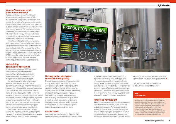 Digitalization creates a lot of data , and this is only useful if you are analyzing it and using the insights it offers to improve the operations of your facility . With the same digitalization infrastructure as for addressing energy efficiency and by adding just a few additional sensors , you can ensure power quality is maintained to guarantee smooth product processing and ensure food quality , and you can better manage the expansion of your facility as it grows to boost capacity or add new lines .