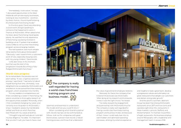 Obviously , for David , the company that ticked all those boxes was McDonald ’ s . “ After doing all my research and homework , I knew it was the right choice ,” he reveals . “ I ’ ve really enjoyed my engagement and partnership with McDonald ’ s thus far . The company is really well-regarded for having a world-class franchisee training program and business model , and because of that , I knew I could really lean into its well-trodden and optimized operating processes , utilizing my external experience and insights to lead a great team , develop a progressive culture and ultimately run great restaurants that delight our customers and deliver strong sales growth .”