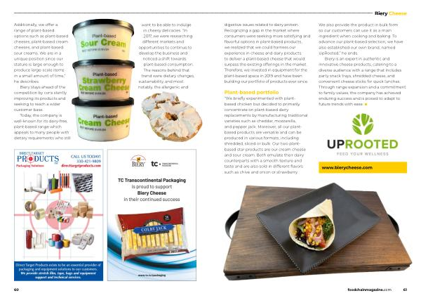 Cheese digestive issues related to dairy protein . Recognizing a gap in the market where consumers were seeking more satisfying and flavorful options in plant-based products , we realized that we could harness our experience in cheese and dairy products to deliver a plant-based cheese that would surpass the existing offerings in the market . Therefore , we invested in equipment for the plant-based space in 2019 and have been building our portfolio of products ever since .