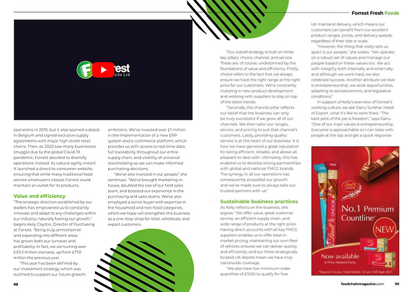 operations in 2018 , but it also opened a depot in Belgium and signed exclusive supply agreements with major high street retail chains . Then , as 2020 saw many businesses struggle due to the global Covid-19 pandemic , Forrest decided to diversify operations instead . Its natural agility meant it launched a direct-to-consumer website , ensuring that while many traditional food service wholesalers closed , Forrest could maintain an outlet for its products .