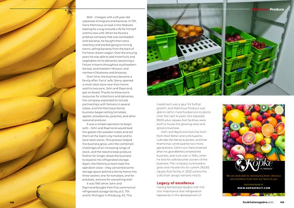 Well – it began with a 23-year-old Lebanese immigrant and bananas . In 1911 , Farris Martinous arrived in the Midwest looking for a way to build a life for himself and his new wife . When he found a produce company that was overloaded with bananas , he bought their extra inventory and started going to mining towns , selling bananas from the back of his horse-drawn wagon . Over the ensuing years he was able to add more fruits and vegetables to his deliveries , becoming a fixture in towns throughout southeastern Kansas , southwestern Missouri , and northern Oklahoma and Arkansas .