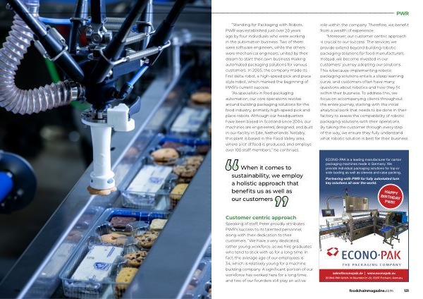 Speaking of staff , Peter proudly attributes PWR ’ s success to its talented personnel , along with their dedication to their customers . “ We have a very dedicated , rather young workforce , as we hire graduates who tend to stick with us for a long time . In fact , the average age of our employees is 34 , which is relatively young for a machine building company . A significant portion of our workforce has worked here for a long time , and two of our founders still play an active sales @ econopak . de | www . econopak . eu ECONO-PAK GmbH , Im Baumfeld 21-23 , 55237 Flonheim , Germany
