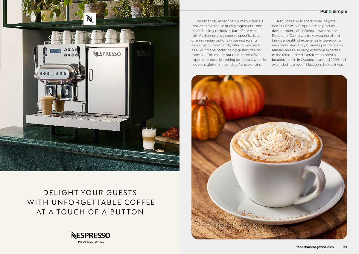 Ritou goes on to share more insights into Pür & Simple ’ s approach to product development . “ Chef Derek Lawrence , our Director of Culinary , is truly exceptional and brings a wealth of experience in developing new menu items . My business partner Derek Massad and I also bring extensive expertise to the table . Indeed , Derek established a breakfast chain in Quebec in around 2009 and expanded it to over 45 locations before it was