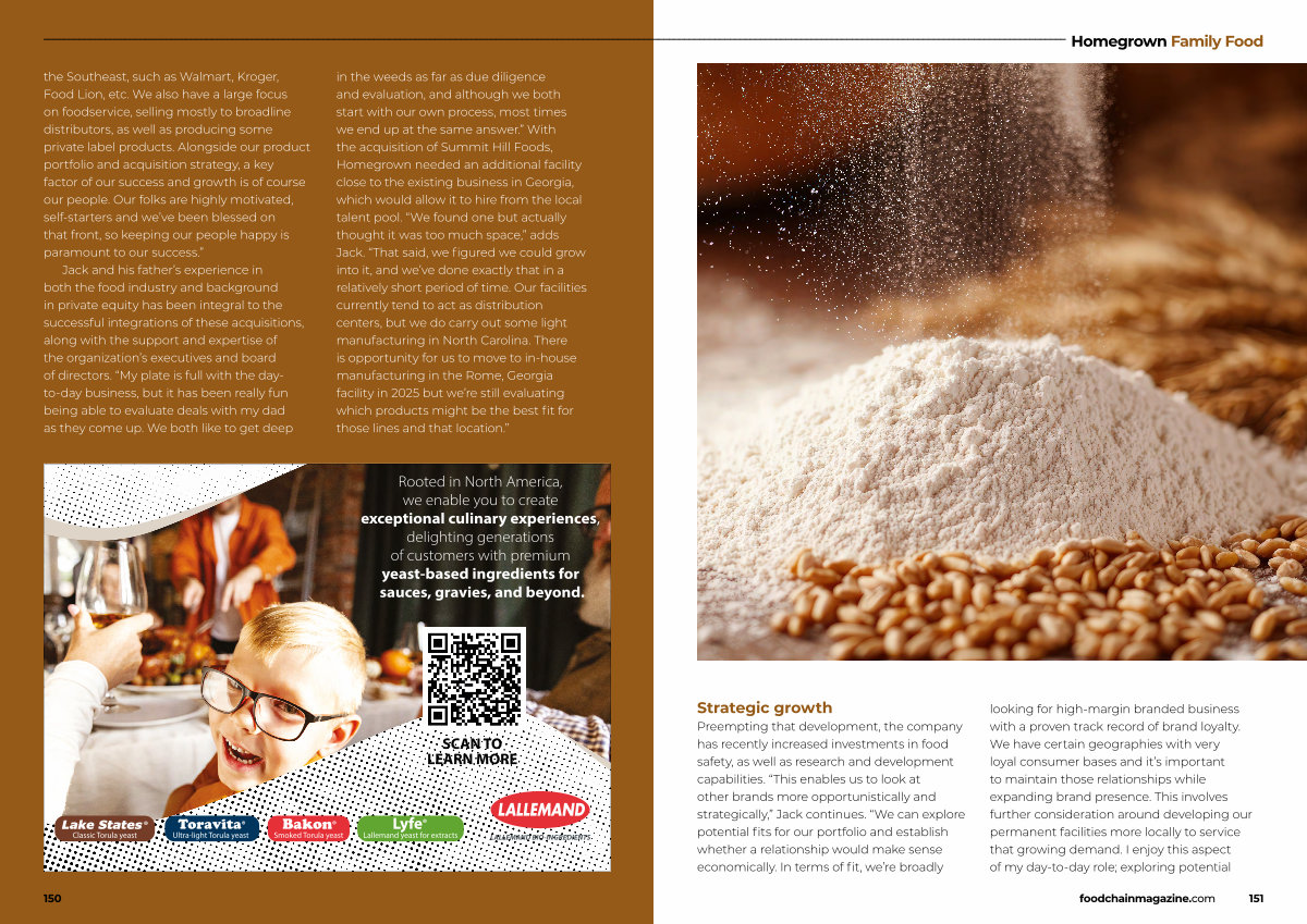 Preempting that development , the company has recently increased investments in food safety , as well as research and development capabilities . “ This enables us to look at other brands more opportunistically and strategically ,” Jack continues . “ We can explore potential fits for our portfolio and establish whether a relationship would make sense economically . In terms of fit , we ’ re broadly looking for high-margin branded business with a proven track record of brand loyalty . We have certain geographies with very loyal consumer bases and it ’ s important to maintain those relationships while expanding brand presence . This involves further consideration around developing our permanent facilities more locally to service that growing demand . I enjoy this aspect of my day-to-day role ; exploring potential