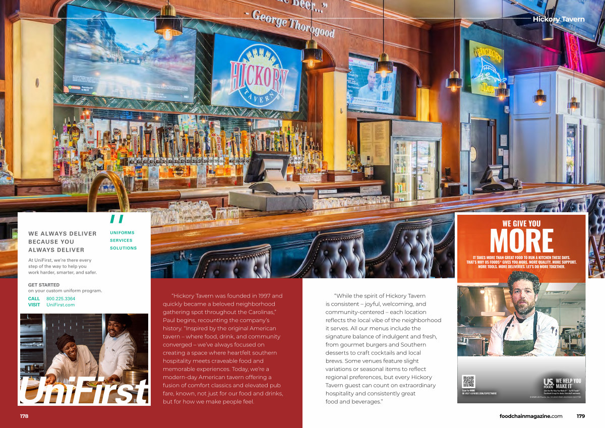 “ Hickory Tavern was founded in 1997 and quickly became a beloved neighborhood gathering spot throughout the Carolinas,” Paul begins, recounting the company’ s history.“ Inspired by the original American tavern – where food, drink, and community converged – we’ ve always focused on creating a space where heartfelt southern hospitality meets craveable food and memorable experiences. Today, we’ re a modern-day American tavern offering a fusion of comfort classics and elevated pub fare, known, not just for our food and drinks, but for how we make people feel.