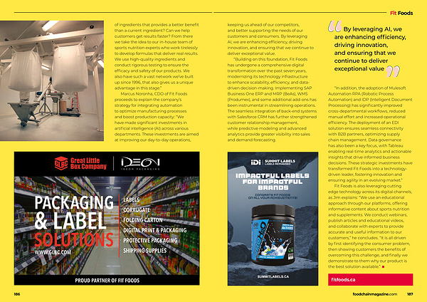 Marcus Noronha, CDO of Fit Foods proceeds to explain the company’ s strategy for integrating automation to optimize manufacturing processes and boost production capacity:“ We have made significant investments in artificial intelligence( AI) across various departments. These investments are aimed at improving our day-to-day operations,