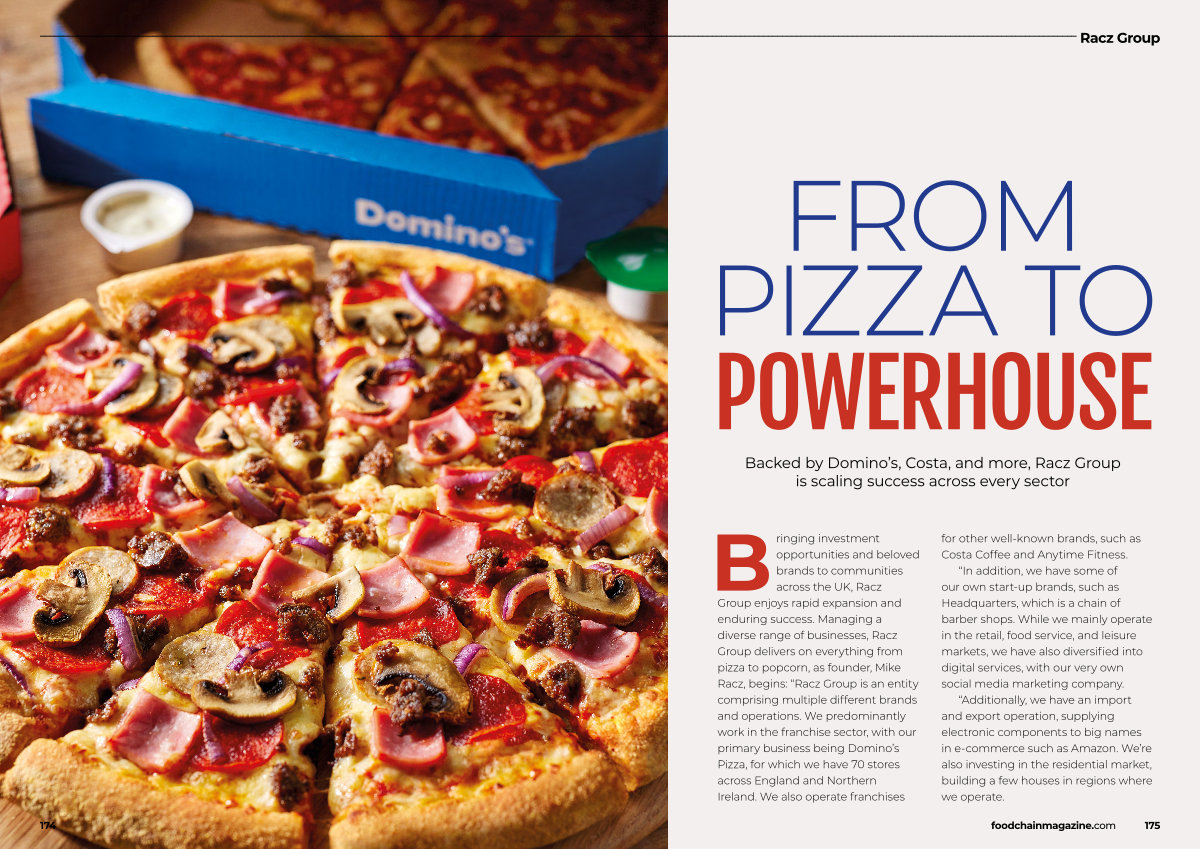 Bringing investment opportunities and beloved brands to communities across the UK, Racz Group enjoys rapid expansion and enduring success. Managing a diverse range of businesses, Racz Group delivers on everything from pizza to popcorn, as founder, Mike Racz, begins:“ Racz Group is an entity comprising multiple different brands and operations. We predominantly work in the franchise sector, with our primary business being Domino’ s Pizza, for which we have 70 stores across England and Northern Ireland. We also operate franchises for other well-known brands, such as Costa Coffee and Anytime Fitness.