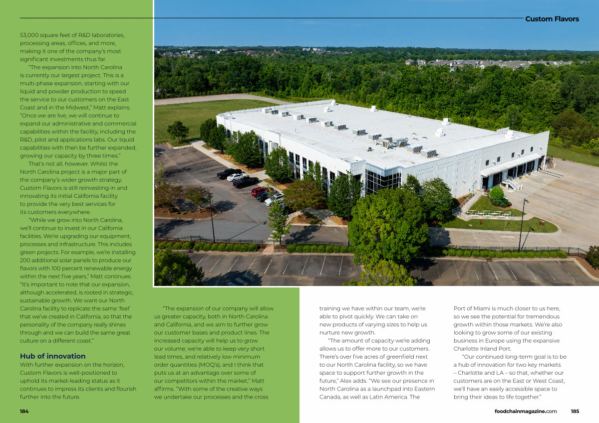 “ The amount of capacity we’ re adding allows us to offer more to our customers. There’ s over five acres of greenfield next to our North Carolina facility, so we have space to support further growth in the future,” Alex adds.“ We see our presence in North Carolina as a launchpad into Eastern Canada, as well as Latin America. The