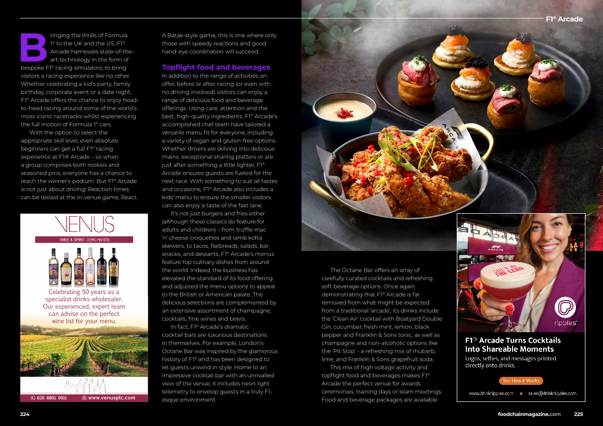In addition to the range of activities on offer, before or after racing( or even with no driving involved) visitors can enjoy a range of delicious food and beverage offerings. Using care, attention and the best, high-quality ingredients, F1 ® Arcade’ s accomplished chef team have tailored a versatile menu fit for everyone, including a variety of vegan and gluten-free options. Whether drivers are delving into delicious mains, exceptional sharing platters or are just after something a little lighter, F1 ® Arcade ensures guests are fueled for the next race. With something to suit all tastes and occasions, F1 ® Arcade also includes a kids’ menu to ensure the smaller visitors can also enjoy a taste of the fast lane.