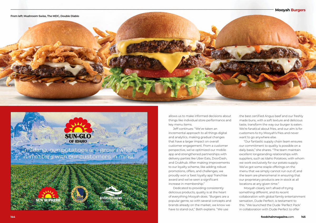 Dedicated to providing consistently delicious products, quality is at the heart of everything Mooyah does.“ Burgers are a popular genre, so with several concepts and brands already on the market, we know we have to stand out,” Beth explains.“ We use the best certified Angus beef and our freshly made buns, with a soft texture and delicious taste, transform the way our burger is eaten. We’ re fanatical about fries, and our aim is for customers to try Mooyah’ s fries and never want to go anywhere else.