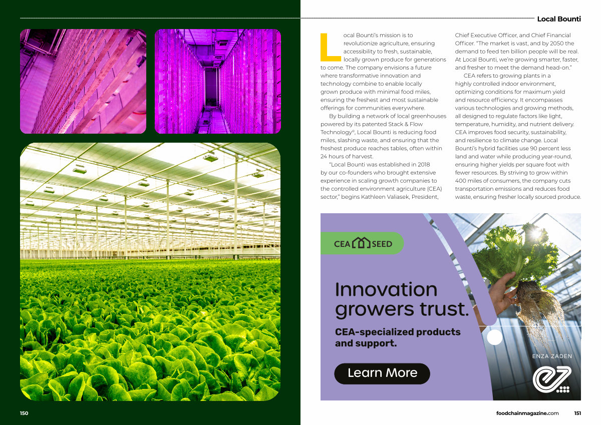 “ Local Bounti was established in 2018 by our co-founders who brought extensive experience in scaling growth companies to the controlled environment agriculture( CEA) sector,” begins Kathleen Valiasek, President,