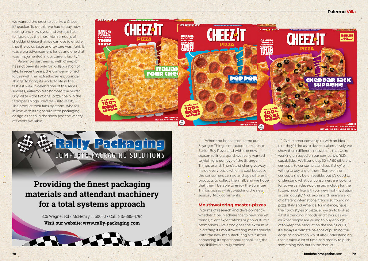 “ A customer comes to us with an idea that they’ d like us to develop; alternatively, we show them different innovations that we’ re working on based on our company’ s R & D capabilities. We’ ll send out 50-to-60 different concepts to consumers and see if they’ re willing to buy any of them. Some of the concepts may be unfeasible, but it’ s good to understand what our consumers are looking for so we can develop the technology for the future, much like with our new high-hydration artisan dough,” Nick explains.“ There are a lot of different international trends surrounding pizza. Italy and America, for instance, have their own styles of pizza, so we try to look at what’ s trending in foods and flavors, as well as what people are willing to buy enough of to keep the product on the shelf. For us, it’ s always a delicate balance of pushing the edge of innovation whilst also understanding that it takes a lot of time and money to push something new out to the market.