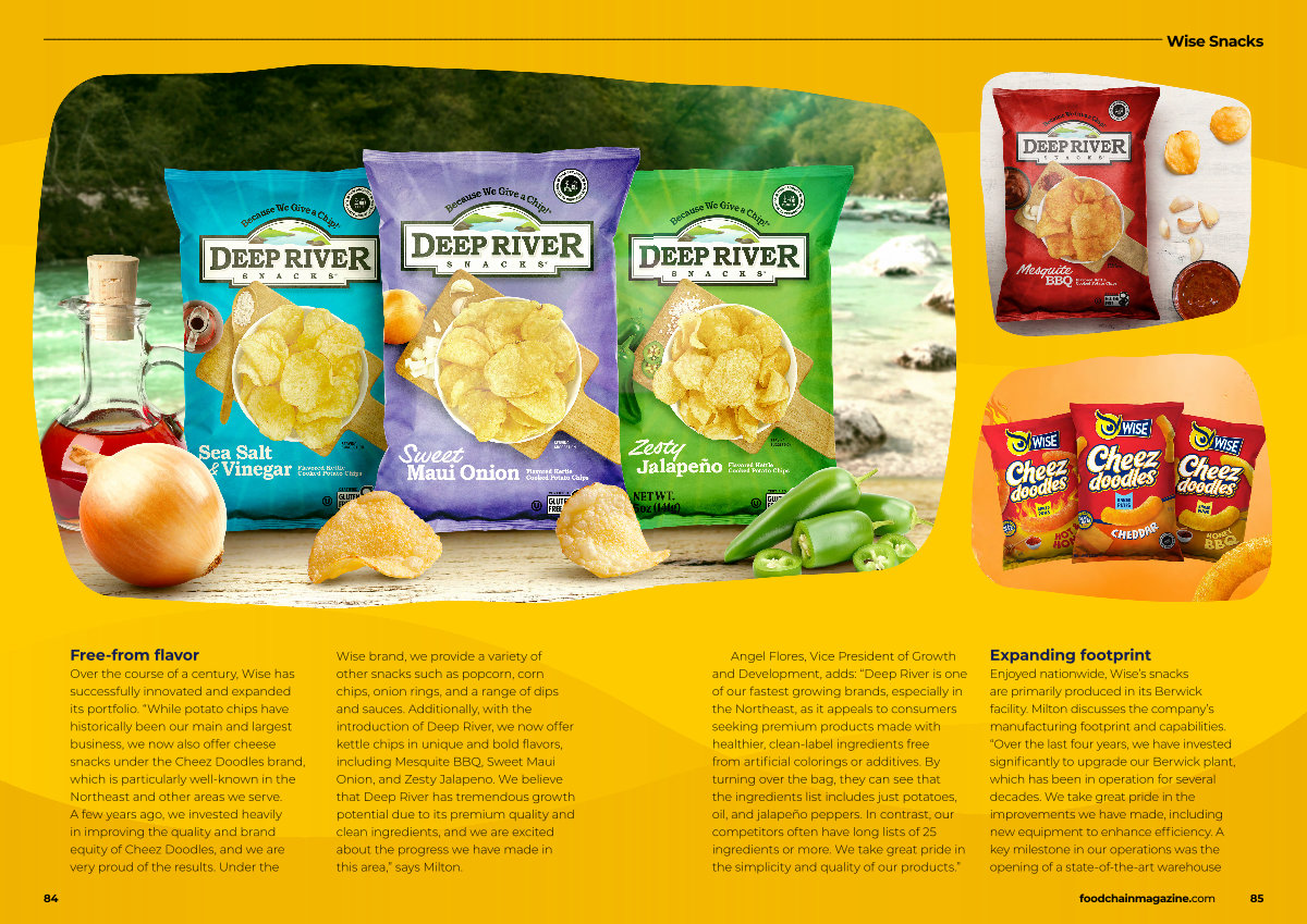 Wise brand, we provide a variety of other snacks such as popcorn, corn chips, onion rings, and a range of dips and sauces. Additionally, with the introduction of Deep River, we now offer kettle chips in unique and bold flavors, including Mesquite BBQ, Sweet Maui Onion, and Zesty Jalapeno. We believe that Deep River has tremendous growth potential due to its premium quality and clean ingredients, and we are excited about the progress we have made in this area,” says Milton.