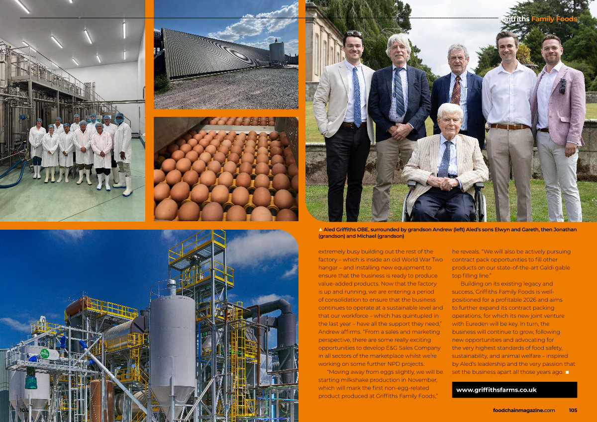 Building on its existing legacy and success, Griffiths Family Foods is wellpositioned for a profitable 2026 and aims to further expand its contract packing operations, for which its new joint venture with Eureden will be key. In turn, the business will continue to grow, following new opportunities and advocating for the very highest standards of food safety, sustainability, and animal welfare – inspired by Aled’ s leadership and the very passion that set the business apart all those years ago. ■