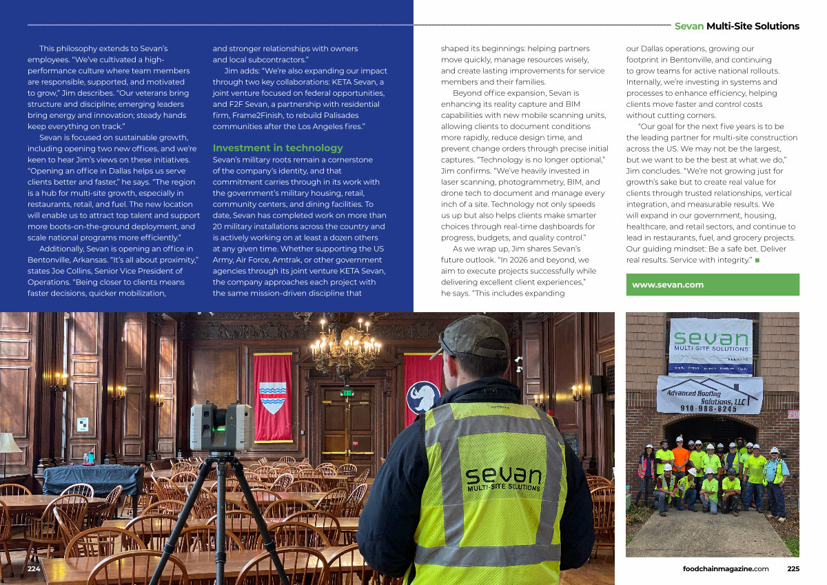 Sevan is focused on sustainable growth, including opening two new offices, and we’ re keen to hear Jim’ s views on these initiatives.“ Opening an office in Dallas helps us serve clients better and faster,” he says.“ The region is a hub for multi-site growth, especially in restaurants, retail, and fuel. The new location will enable us to attract top talent and support more boots-on-the-ground deployment, and scale national programs more efficiently.”