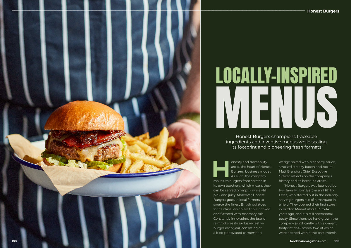 Honesty and traceability are at the heart of Honest Burgers’ business model. As such, the company makes its burgers from scratch in its own butchery, which means they can be served promptly while still pink and juicy. Moreover, Honest Burgers goes to local farmers to source the finest British potatoes for its chips, which are triple-cooked and flavored with rosemary salt. Constantly innovating, the brand reintroduces its exclusive festive burger each year, consisting of a fried poppyseed camembert wedge paired with cranberry sauce, smoked streaky bacon and rocket. Matt Brandon, Chief Executive Officer, reflects on the company’ s history and its latest initiatives.