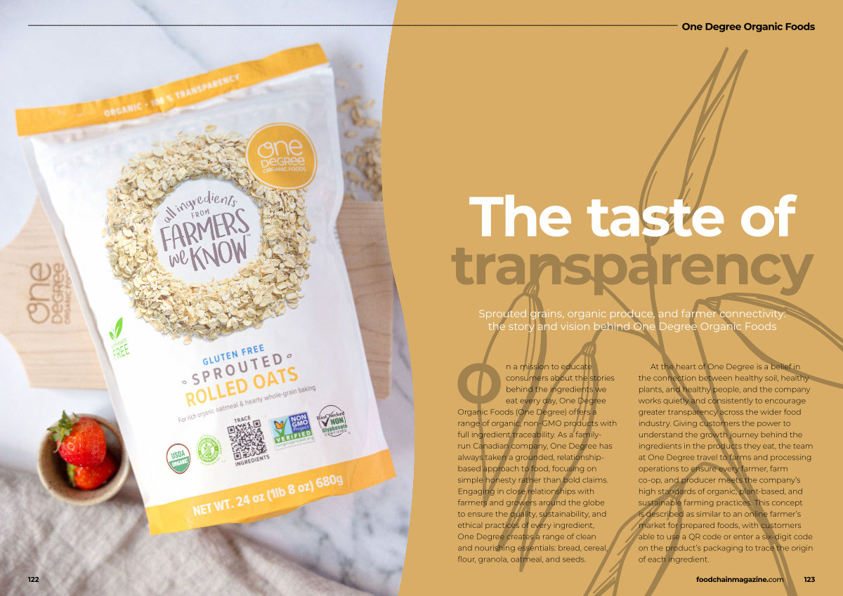 On a mission to educate consumers about the stories behind the ingredients we eat every day, One Degree Organic Foods( One Degree) offers a range of organic, non-GMO products with full ingredient traceability. As a familyrun Canadian company, One Degree has always taken a grounded, relationshipbased approach to food, focusing on simple honesty rather than bold claims. Engaging in close relationships with farmers and growers around the globe to ensure the quality, sustainability, and ethical practices of every ingredient, One Degree creates a range of clean and nourishing essentials: bread, cereal, flour, granola, oatmeal, and seeds.