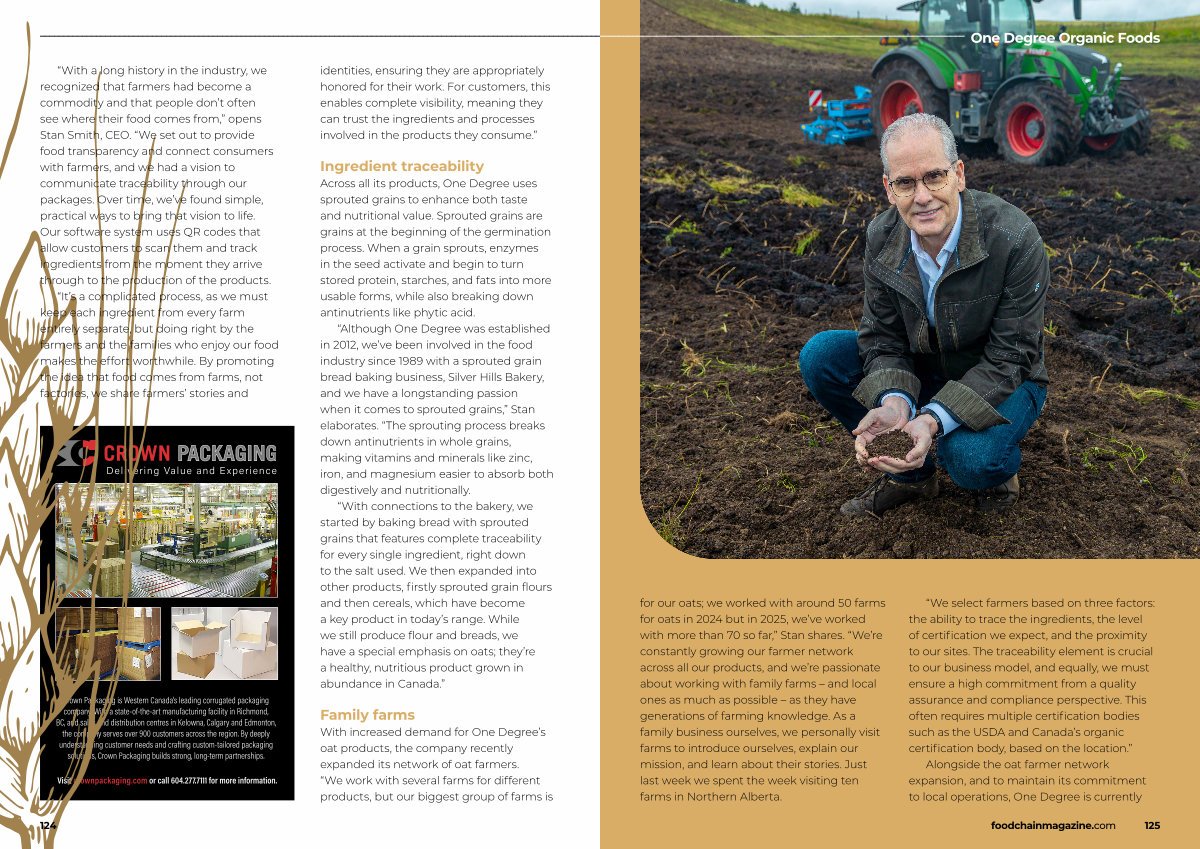 “ Although One Degree was established in 2012, we’ ve been involved in the food industry since 1989 with a sprouted grain bread baking business, Silver Hills Bakery, and we have a longstanding passion when it comes to sprouted grains,” Stan elaborates.“ The sprouting process breaks down antinutrients in whole grains, making vitamins and minerals like zinc, iron, and magnesium easier to absorb both digestively and nutritionally.