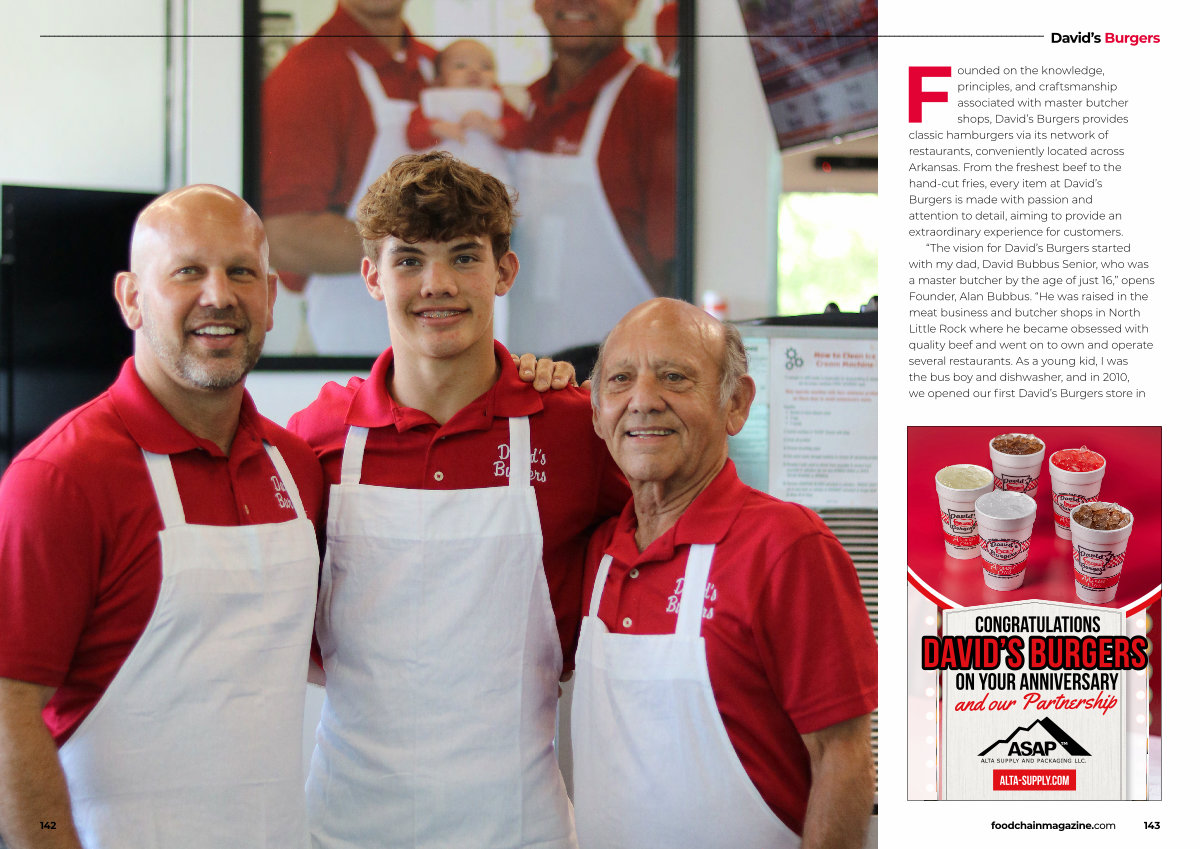 “ The vision for David’ s Burgers started with my dad, David Bubbus Senior, who was a master butcher by the age of just 16,” opens Founder, Alan Bubbus.“ He was raised in the meat business and butcher shops in North Little Rock where he became obsessed with quality beef and went on to own and operate several restaurants. As a young kid, I was the bus boy and dishwasher, and in 2010, we opened our first David’ s Burgers store in