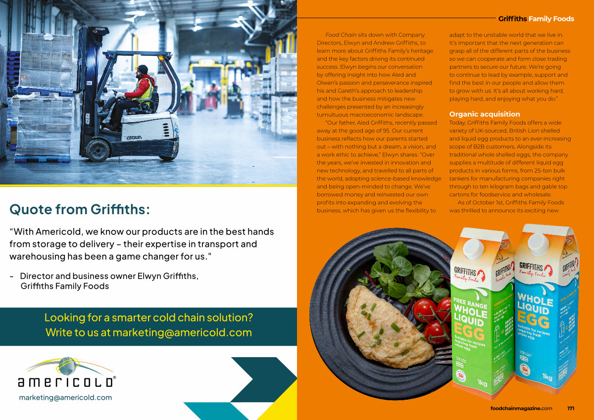 Food Chain sits down with Company Directors, Elwyn and Andrew Griffiths, to learn more about Griffiths Family’ s heritage and the key factors driving its continued success. Elwyn begins our conversation by offering insight into how Aled and Olwen’ s passion and perseverance inspired his and Gareth’ s approach to leadership and how the business mitigates new challenges presented by an increasingly tumultuous macroeconomic landscape.