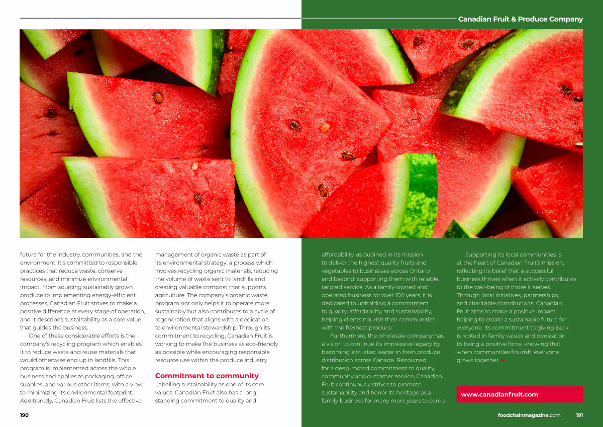 Furthermore, the wholesale company has a vision to continue its impressive legacy by becoming a trusted leader in fresh produce distribution across Canada. Renowned for a deep-rooted commitment to quality, community and customer service, Canadian Fruit continuously strives to promote sustainability and honor its heritage as a family business for many more years to come.