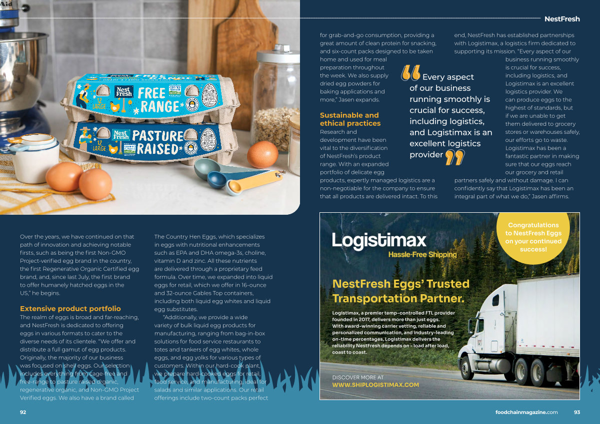 Over the years, we have continued on that path of innovation and achieving notable firsts, such as being the first Non-GMO Project-verified egg brand in the country, the first Regenerative Organic Certified egg brand, and, since last July, the first brand to offer humanely hatched eggs in the US,” he begins.