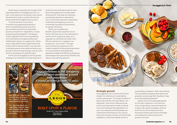 At the core of Swaggerty’ s Farm’ s growth strategy is an emphasis on remaining true to its family roots and delivering the same taste and quality that it’ s always been renowned for. That said, the company consistently reinvests in operations, with a recent focus being on expanding its facilities and capacity, as well as innovating manufacturing processes for greater efficiency.