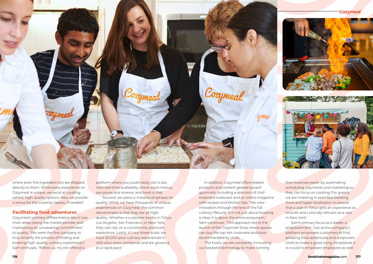 In addition, Cozymeal offers related products and content geared toward gourmets, including a selection of chefendorsed cookware and an online magazine with recipes and kitchen tips.“ We view innovation through the lens of the full culinary lifecycle. It is not just about booking a class; it is about the entire ecosystem,” Sam continues.“ This approach led to the launch of the Cozymeal Shop where guests can buy the top-tier cookware and tools recommended by chefs.