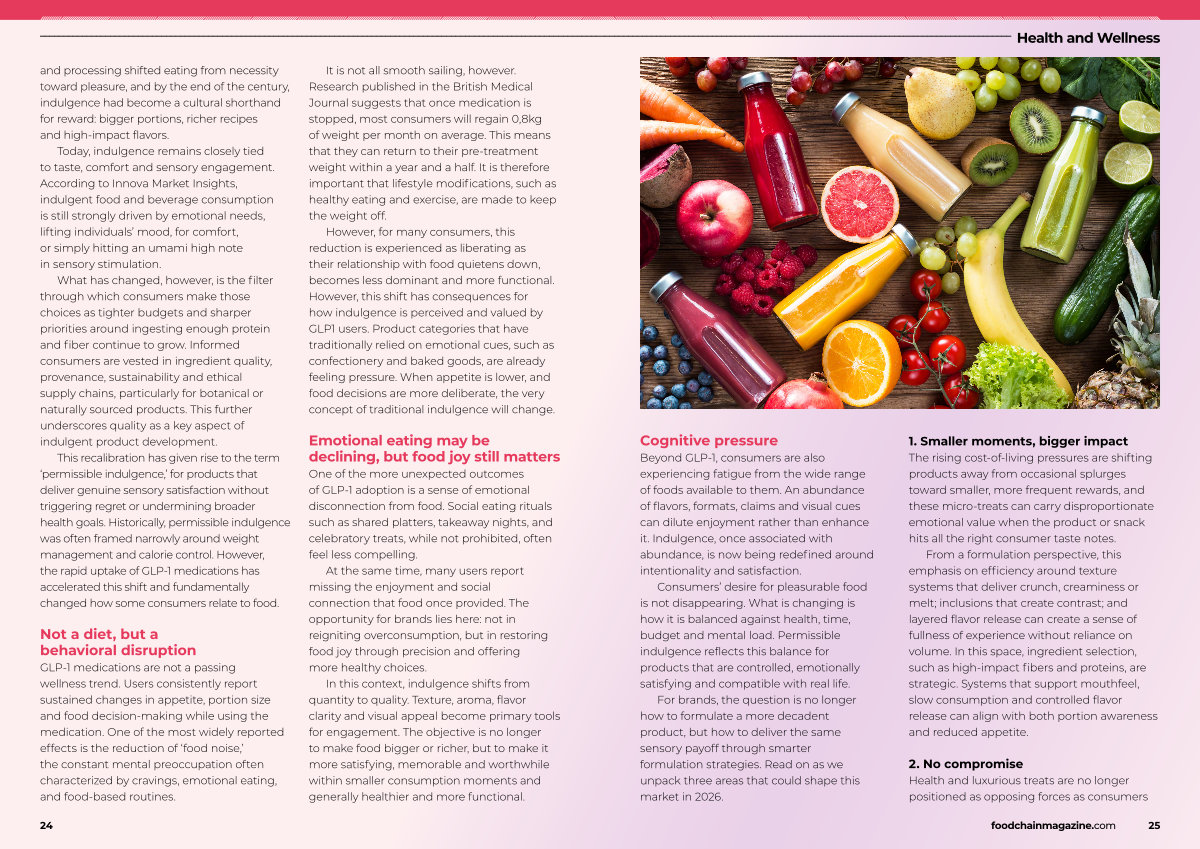 Beyond GLP-1, consumers are also experiencing fatigue from the wide range of foods available to them. An abundance of flavors, formats, claims and visual cues can dilute enjoyment rather than enhance it. Indulgence, once associated with abundance, is now being redefined around intentionality and satisfaction.